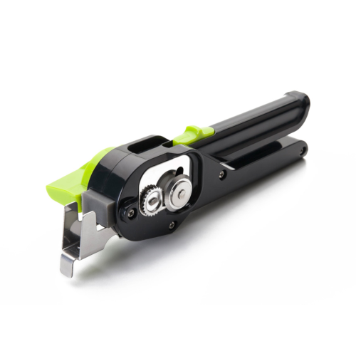 Fabricado en acero inoxidable y plástico, su diseño innovador asegura un uso duradero y eficiente. El sistema de apertura es rápido y efectivo, garantizando que las tapas se retiren sin esfuerzo ni desorden, además de evitar posibles lesiones. Su construcción ligera y compacta permite guardarlo fácilmente en cualquier cajón o espacio de cocina.