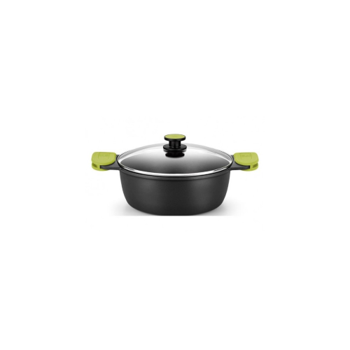 Incluye dos asas de silicona en color verde para coger la cacerola con comodidad y tapa de cristal.
