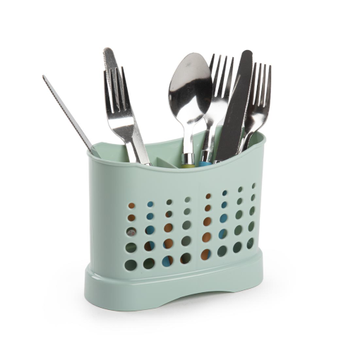 Fabricado en plástico resistente y libre de BPA, este escurrecubiertos es duradero, ligero y fácil de limpiar. Su diseño cuenta con divisores internos, permitiendo separar cucharas, tenedores y cuchillos para una mejor distribución y accesibilidad. Además, su base estable evita derrames y mantiene la zona de lavado siempre ordenada.